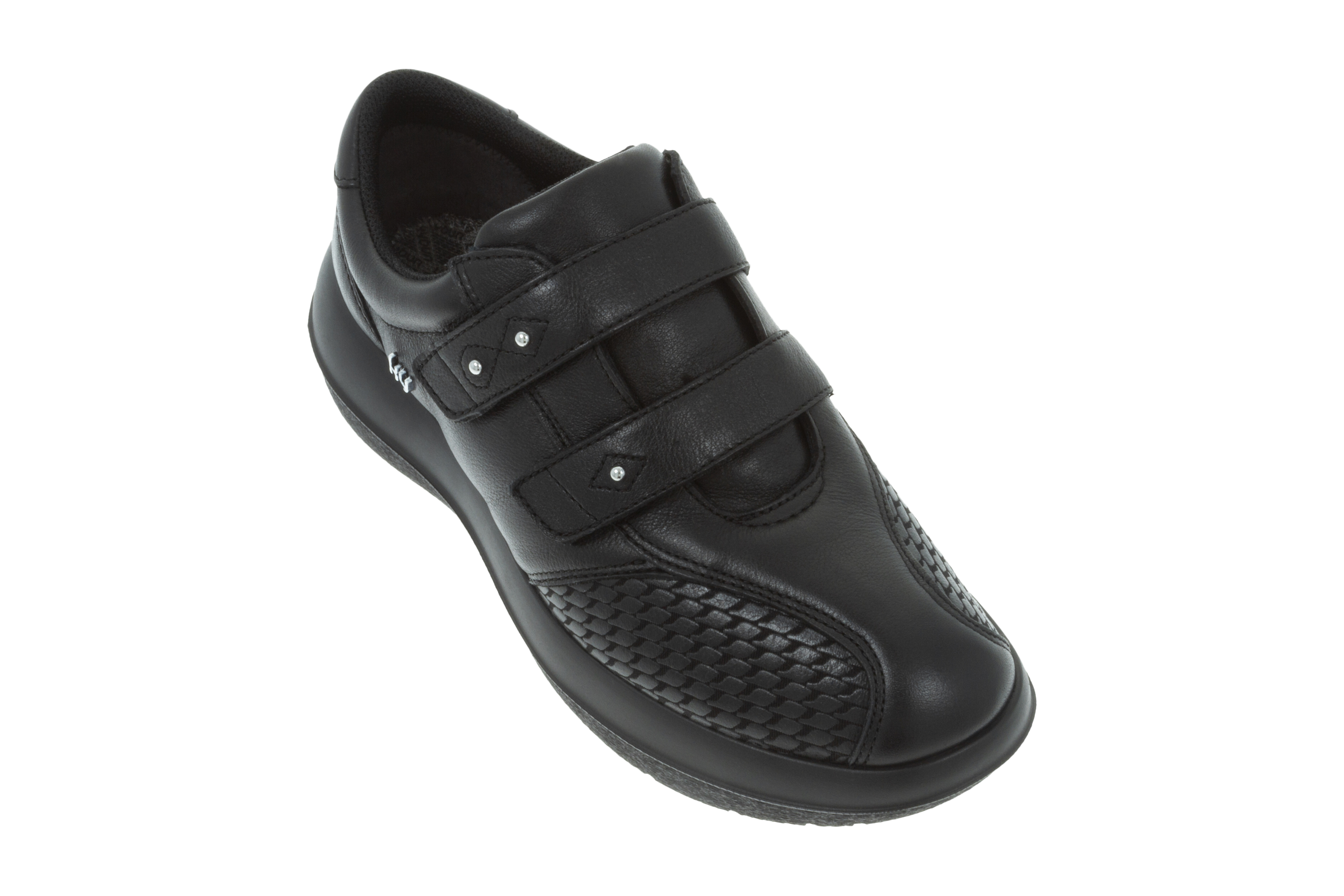 Der beliebte Klassiker mit Klettverschluss wird durch besonders dehnbare Einsätze an empfindlichen Stellen wie der Innen- und Aussenseite des Vorderfusses optimiert. Besonders für Kundinnen mit Hallux Valgus geeignet.