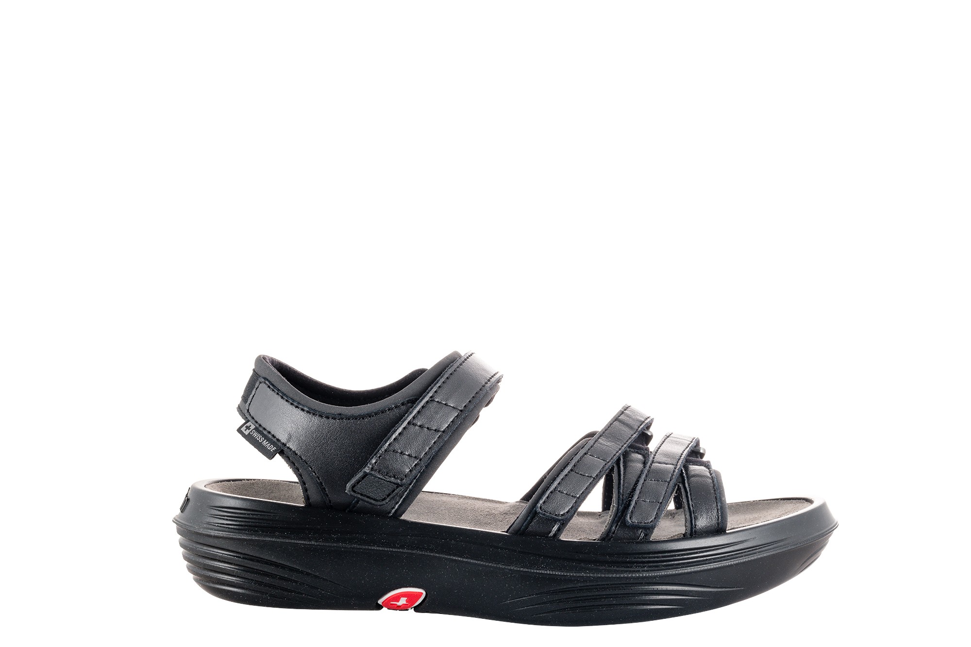 Eine elegante und vielseitige Sandale mit verstellbarem Rist- und Klettverschlussriemen. Ausgestattet mit einem Fussbett aus samtweichem Veloursleder für optimalen Komfort. Die perfekte Wahl für heisse Tage oder für den ganzjährigen Gebrauch in Innenräumen. Ausgestattet mit der einzigartigen kybun Schweizer Sandale Luftkissen-Sohle mit grossem Rückfederungseffekt, die ein aussergewöhnlich schonendes Laufgefühl vermittelt, die Gelenke und den Rücken entlastet, die gesundheitsfördernden Rezeptoren in den Füssen stimuliert und die Muskeln bei jedem Schritt stärkt.